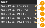 原稿の内容に合わせて解像度を選ぶことができます。高い解像度を選ぶほどくっきりとした画像になりますが、その分送信時間が長くなることがあります。