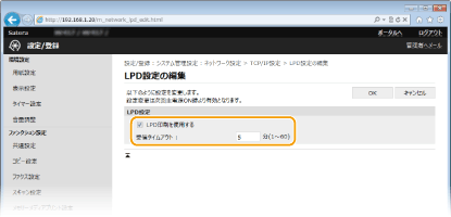 LPDを使用して印刷するときはチェックマークを付けます。使用しない場合はチェックマークを外してください。