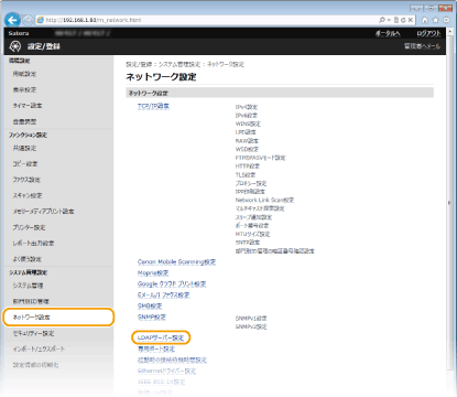 [LDAPサーバー設定]をクリックする