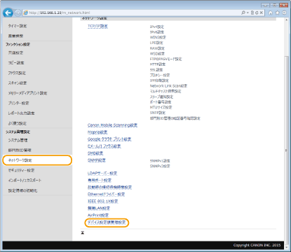 [ネットワーク設定][デバイス設定値管理設定]をクリックする