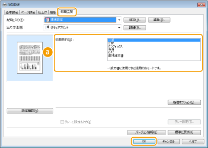 [印刷目的]で選んだ各項目についてさらに細かく設定するには、[処理オプション]をクリックします。詳細については、ドライバー画面の[ヘルプ]をクリックして、ヘルプを参照してください。
