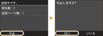 を押した直後に送信を中止するときは、画面から<中止>をタップするか、操作パネルの