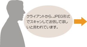<ファイル形式>を<JPEG>にしてクライアントのEメールアドレスを指定した組み合わせを<よく使う設定>に登録。必要なときに、この設定を呼び出すだけでOKです。よく使うスキャン設定を登録する(Eメール/Iファクス/共有フォルダー/FTPサーバー)