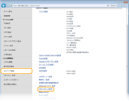[ネットワーク設定][IEEE 802.1X設定]をクリックする