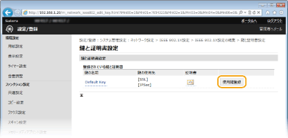 使用する鍵ペアの右側にある[使用鍵登録]をクリックする