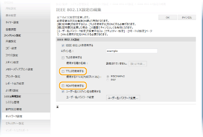 [TTLSを使用する]または[PEAPを使用する]にチェックマークを付ける