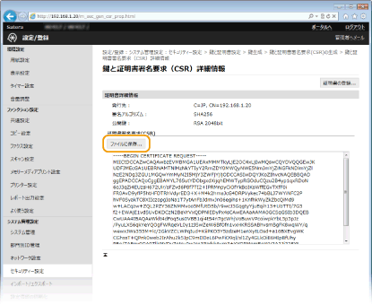 証明書署名要求(CSR)のファイルがパソコンに保存されます。