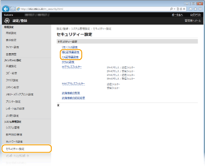 [鍵と証明書設定]または[CA証明書設定]をクリックする