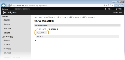 [鍵と証明書の登録]または[CA証明書登録]をクリックする