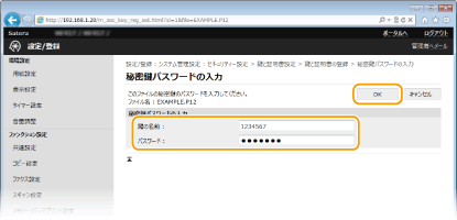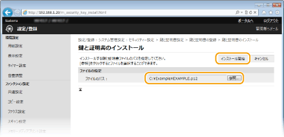 パソコンから本機に鍵ペアまたはCA証明書がインストールされます。
