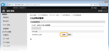 登録したいCA証明書の右側にある[登録]をクリックします。