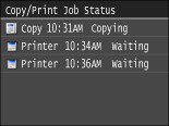 , a screen appears in which you can check the progress of documents that are being printed, sent or received, as well as the status of the machine (amount remaining in the toner cartridge, etc.) and network settings such as the machine's IP address.