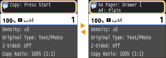 <Paper Settings>This button is also used for specifying the size and type of paper loaded in the paper drawer and multi-purpose tray. Specifying Paper Size and Type