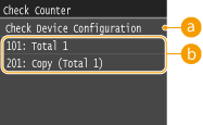 ), the <Check Counter> screen is displayed. From this screen, you can view the counter values of printouts, as well as the serial number of the machine and the machine configuration.