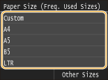 If the screen shown above is not displayed when paper is loadedIf you always load the same paper in the multi-purpose tray, you can skip the paper setting operations by registering the paper size and type as the default setting. When the default setting is registered, however, the screen shown above is not displayed. To display the screen, select <Specify When Loading Paper> (Registering Default Paper Settings for the Multi-Purpose Tray).