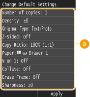 . If you change these default settings to match the operations that you perform frequently, you can eliminate the need to configure the same settings every time you make copies.