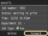 The machine forwards the document that you select from among all the documents received in memory. To use this feature, first activate the Memory Reception feature. Storing Received Faxes into Memory (Memory Reception)