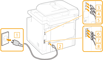 Disconnect the cables and cord from the machine in numerical order as in the illustration below.