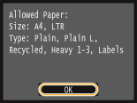 Check that the size and type of paper displayed on the screen is loaded in the machine, and tap <OK>.