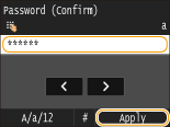 Enter the password using the numeric keys, and tap <Apply>.