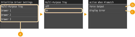 If the printer driver's settings do not match the size and type of loaded paper with <On> selected, a paper jam or printing error may occur.