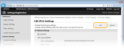 Using the operation panelIPv6 settings can also be accessed from <Menu> in the Home screen. IPv6 Settings