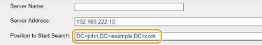Specify the node in the directory information tree (DIT) that you want to start search from. Leaving the text box blank sets the machine to start search from an arbitrary node selected automatically.