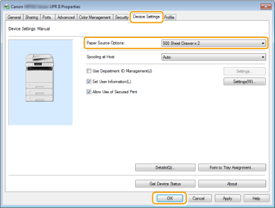 Set [Paper Source Options]