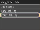 When <Display Job Log> is set to <Off>, you cannot check the print job log. Display Job Log