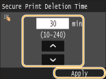 Specify how long the machine holds secured documents, and tap <Apply>.