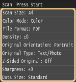 File names from "SCAN0000.XXX" to "SCAN9999.XXX" are given to the scanned data files ("XXX" is the extension for the file format such as "JPG"). For the first two numerical digits, the same number is allotted as that of the folder number in which the files are saved. For example, The fifth JPEG file stored in the "SCAN_01" folder is named "SCAN0105.JPG".