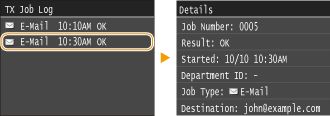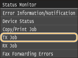 ![]() <TX Job Log>Displays a list of the documents that were sent. <OK> is displayed when a document was sent successfully, and <Error> is displayed when a document failed to be sent because it was canceled or there was some error.