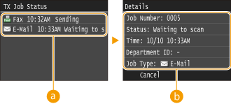 ![]() <TX Job Status>Displays a list of the documents that are being sent or are waiting to be processed.