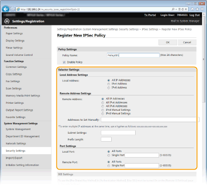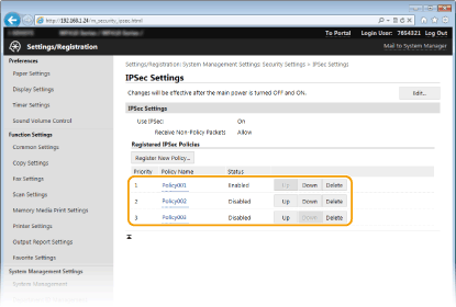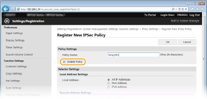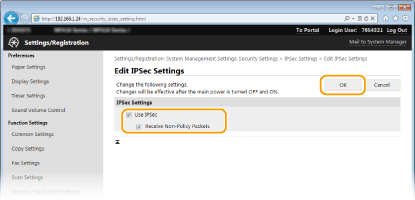 Using the operation panelYou can also enable or disable IPSec communication from <Menu> in the Home screen. Use IPSec