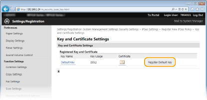 Click the [Digital Signature Method] radio button for [Authentication Method] and then click [Key and Certificate].