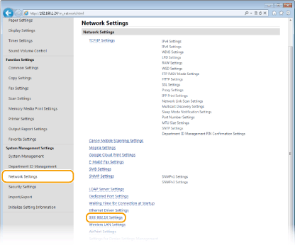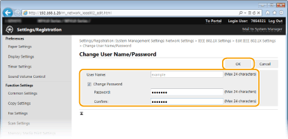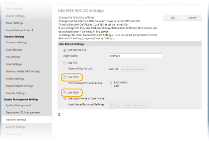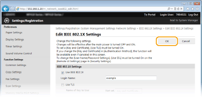 Using the operation panelYou can also enable or disable IEEE 802.1X authentication from <Menu> in the Home screen. IEEE 802.1X Settings