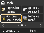 Si la pantalla Inicio estuviera llena y no se pudieran registrar más opciones, elimine botones registrados y espacios en <Opciones pan. inicio>.