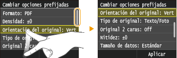 para ajustar el valor de la escala. También podrá ajustar un valor desplazando con el dedo la barra deslizante a la izquierda o a la derecha.
