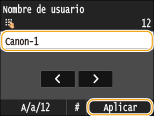 Introduzca su nombre de usuario utilizando las teclas numéricas y pulse <Aplicar>.