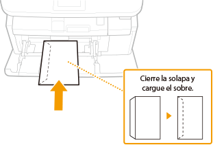 Esta sección describe cómo cargar sobres en la orientación deseada, así como los procedimientos que debe seguir antes de cargar sobres.Para obtener una descripción del procedimiento general para cargar sobres en la bandeja multiuso, consulte Carga de papel en la bandeja multiuso.
