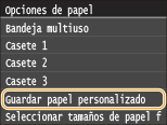 Cuando se selecciona el tamaño de papel para el casete de papel