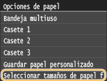 Los tamaños de papel que no estén marcados podrán visualizarse pulsando <Otros tamaños> en la pantalla para seleccionar la opción de tamaño del papel.
