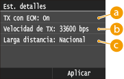 También podrá especificar <TX con ECM> y <Velocidad de TX> desde <Menú>