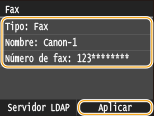 <Opciones de fax>. No obstante, los ajustes realizados desde <Libreta dir.> se habilitarán para las opciones detalladas de destinos registrados en la libreta de direcciones. |