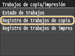 Si <Mostrar registro de trabajos> está establecido en <Off>, no podrá consultar el registro de trabajos de copia. Mostrar registro de trabajos