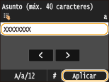 Introduzca el asunto utilizando las teclas numéricas y pulse <Aplicar>.