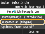 ![]() ![]() La dirección de respuesta que se puede especificar es siempre una de las direcciones de correo electrónico de la Libreta de direcciones.