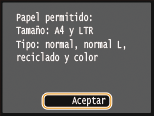 Compruebe que se hayan cargado en el equipo el tamaño y el tipo de papel que indica el dispositivo, y pulse <Aceptar>.