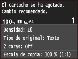 Si el equipo recibe un fax, o se configura la impresión automática de informes, los faxes e informes recibidos se almacenarán en el equipo de forma que no aparezcan difuminados una vez impresos. Para seguir imprimiendo aunque el cartucho de tóner tenga poco tóner, establezca <Seguir imprimiendo cuando la cantidad en cartucho es baja> en <On>. Seguir imprimiendo cuando la cantidad en cartucho es baja