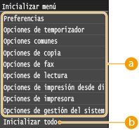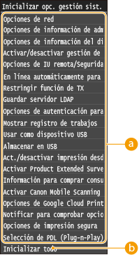 Si se inicializan las opciones de la IU remotaEl PIN de acceso a la IU remota también se inicializa.Tras una inicialización, vuelva a establecer el PIN de acceso a la IU remota. Configuración de un PIN para la IU Remota